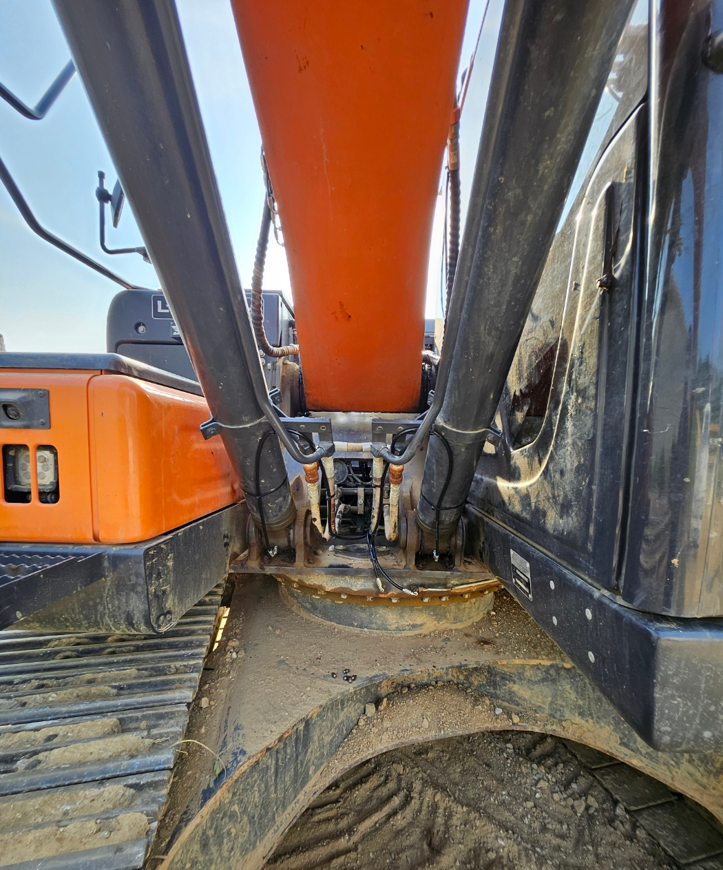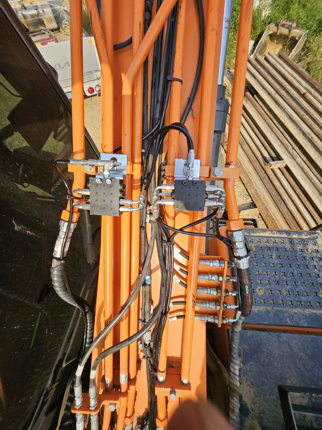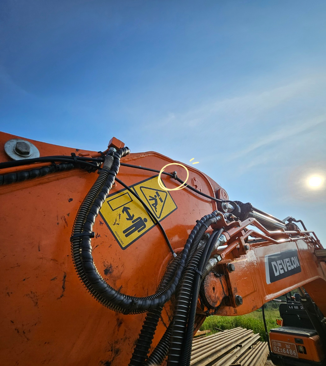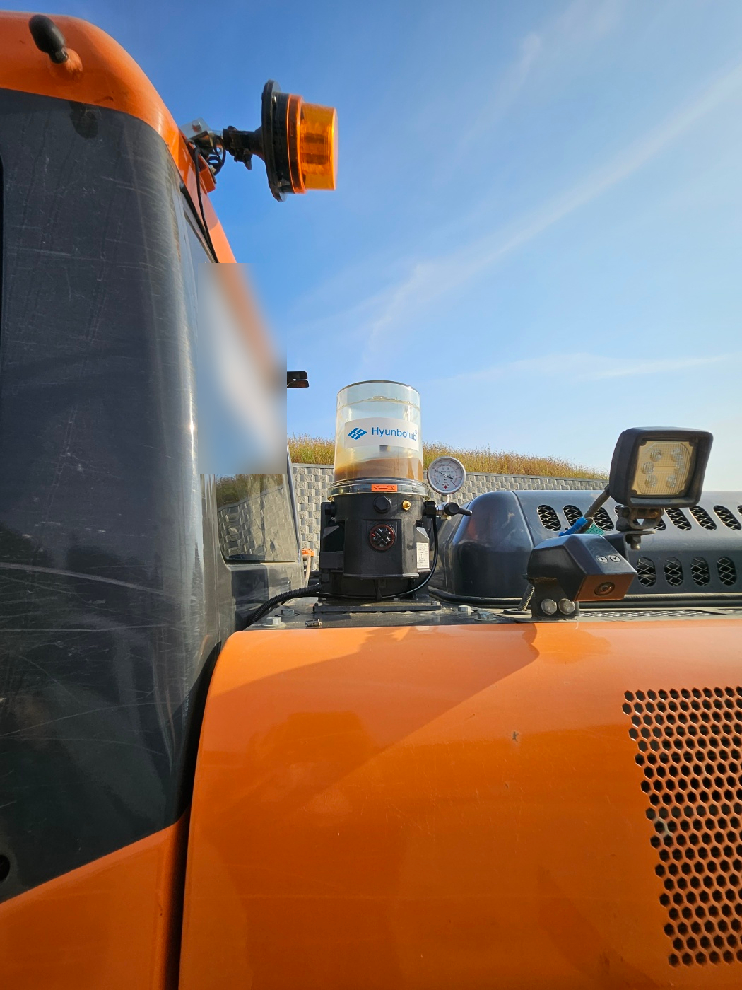 An automatic grease pump was installed on a Devlon 6LC excavator five months after purchase to address maintenance inconvenience. The pump was mounted behind the operator’s seat at a location that does not interfere with machine operation. A centralized lubrication system was configured with one main distributor and multiple secondary distributors: two on the boom for precise grease metering, one on the arm/cylinder side for low-consumption points, and a dedicated H-link distributor set to deliver the highest grease volume due to high bushing wear.
